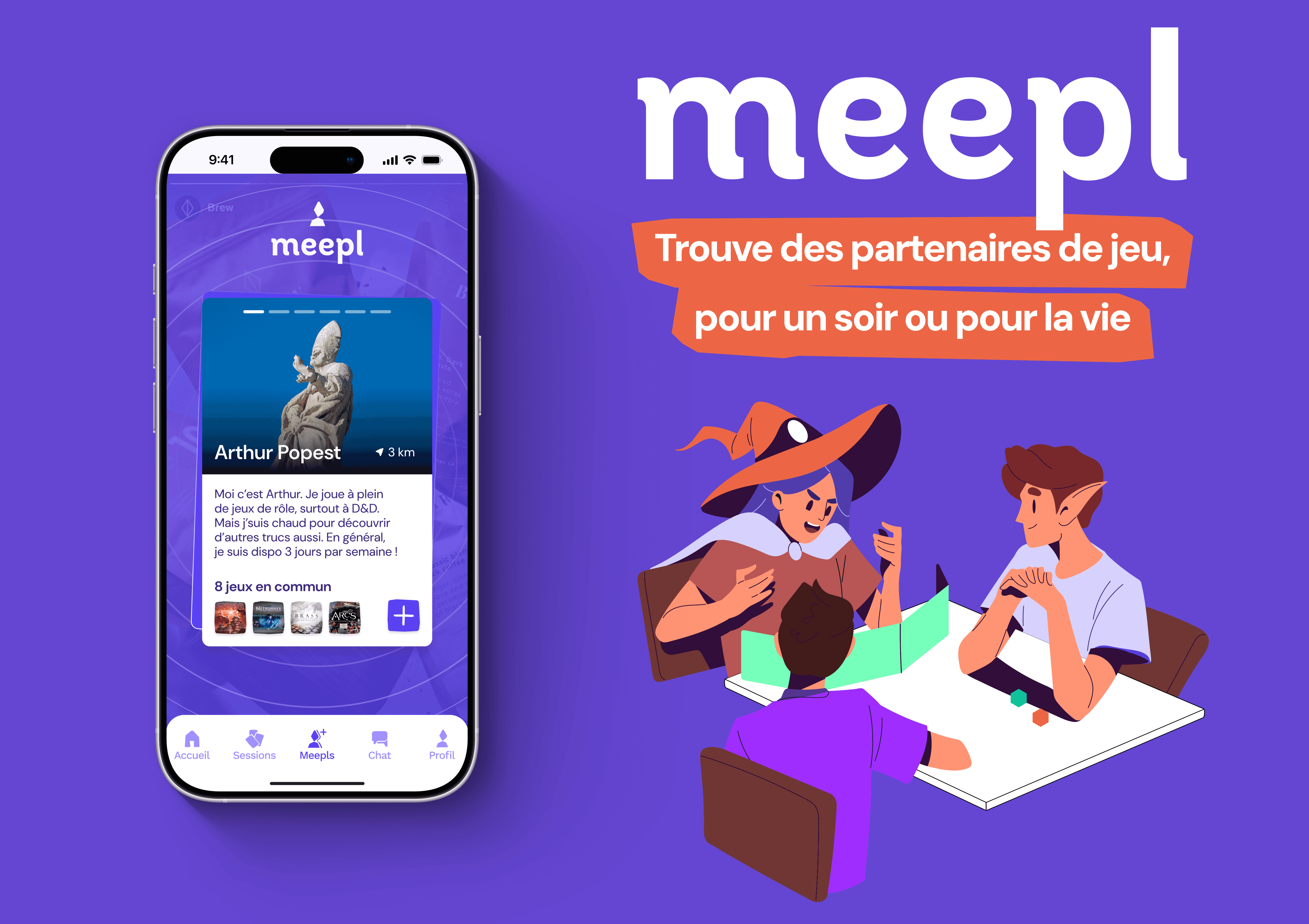 Meepl is an app that connects board game and tabletop RPG enthusiasts through an intuitive swiping experience. It helps users meet new players, discover games, and easily organize sessions. More than just a matching tool, Meepl builds a welcoming community where shared experiences and connections come to life.